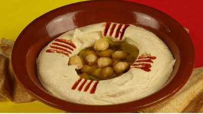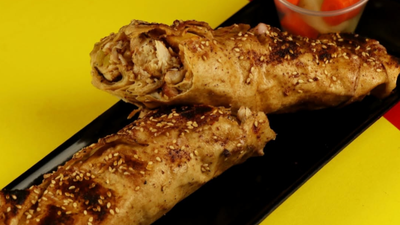 خبز لبناني، توم، كاتشب، مخللات، سلطة كول سلو، بطاطس مقلية. يُحمّس مع الصلصة على الخبز وقليل من السمسم والسماق