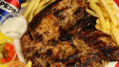 Our juicy charcoal grilled farrouj marinated in farrouj fakhem's signature marinate, fries, hommos, our special khebze mtawame, toum, sauce al fakhem, pickles, and two special bread